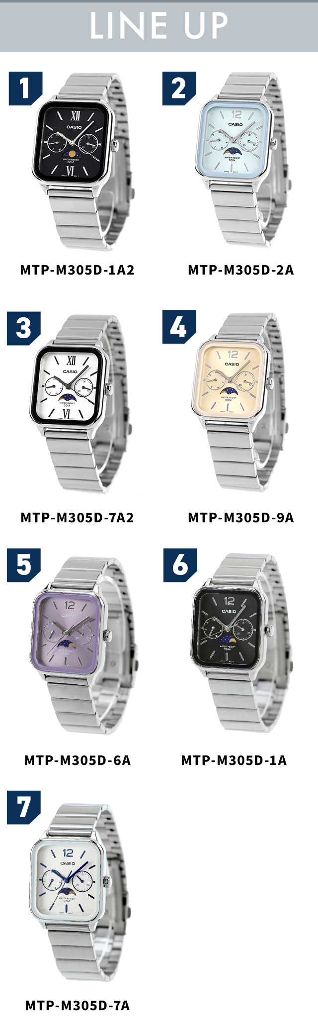 チープカシオ 腕時計 海外モデル カシオ クオーツ 電池式 メンズ レディース かわいい チプカシ アナログ スクエア ムーンフェイズ ブラック ブルー シルバー ゴールド 黒 CASIO MTP-M305 ブランド おしゃれ かっこいい プレゼント 女性 学生 選べるモデル