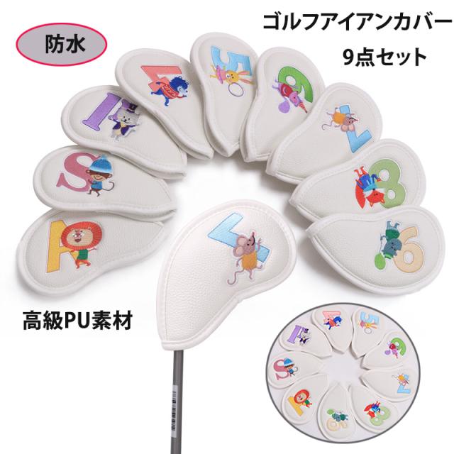 ゴルフアイアンカバー アイアンカバー ゴルフウッドカバー ヘッドカバー ゴルフカバー ゴルフ用品 9点セット 番手付き 保護 フェアウェイウッド