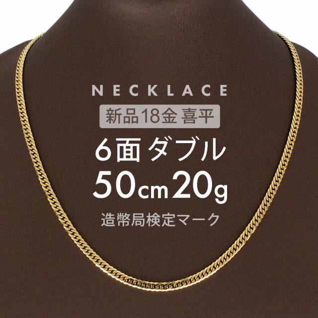 新品 K18 ネックレスチェーン 喜平 キヘイ 約20g 6面ダブル 6DCW 50cm キヘイネックレス 喜平ネックレス 留め具中折れ式 18金 K18ゴールド ゴールド ユニセックス R&Kリサイクルキング