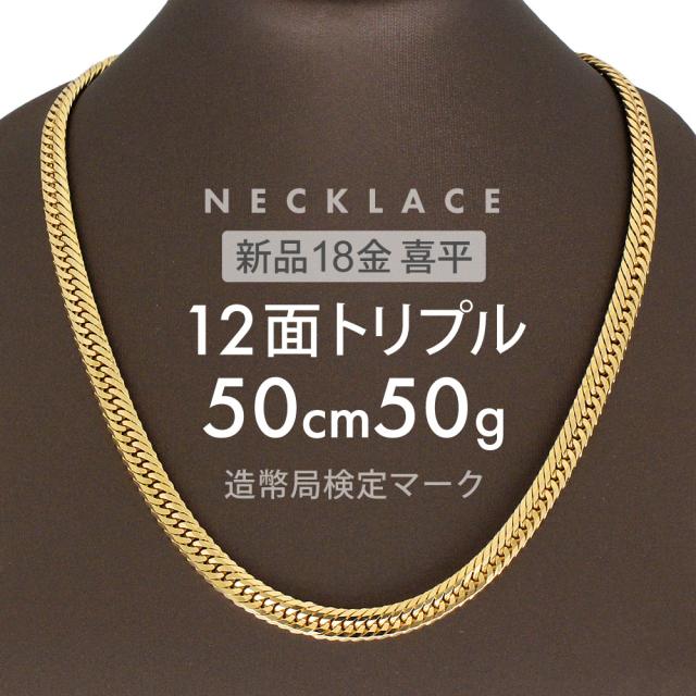 喜平 ネックレス 約50g 12面トリプル 12DCT 50cm 留め具中折れ式 ネックレス 18金 K18ゴールド ユニセックス ホールマーク刻印 新品配達転送不可 R&Kリサイクルキング