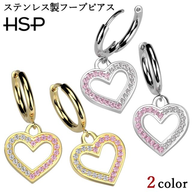 くり抜きハートのデザインがかわいい人気のステンレス製フープピアス。