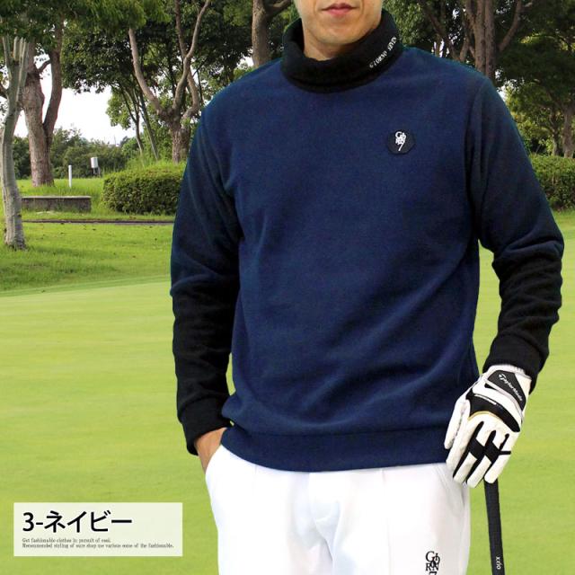 M~XXL 新作 ゴルフウェア メンズ フリース 軽量 暖かい GIORNO SEVEN ジョルノセブン タートルネック ニット トレーナー トップス ロゴ 刺繍 送料無料 おしゃれ ブランド 秋冬