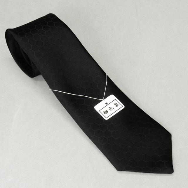 フォーマルネクタイ 黒 亀甲柄 甲州織 日本製 葬式・葬儀・告別式 ポリエステル100% メール便可 NKK22
