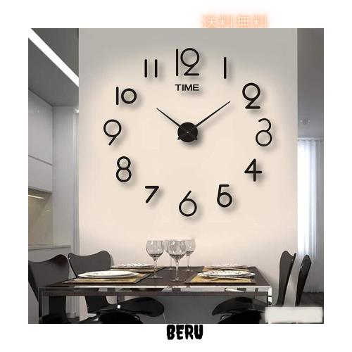 億騰 3D DIY手作りクロック掛け時計壁時計ウォールクロックウォールステッカーアラビア数字インテリアシンプルおしゃれフリー配置ブラッ