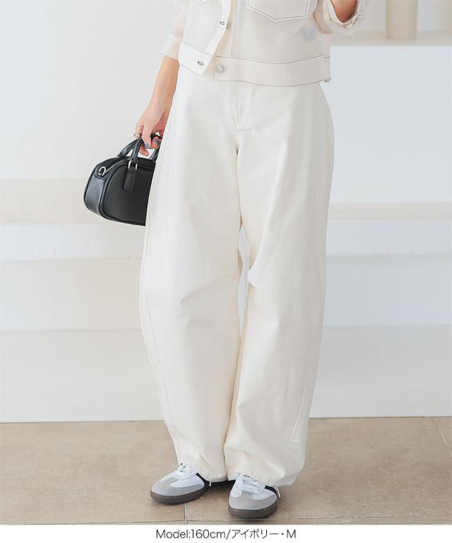 春新作 ヘビーツイルカーブパンツ M4113 入荷済 レディース 20代 30代 40代 カーブパンツ バレルレッグパンツ バルーンパンツ ツイル デニム 綿 コットン ワイドパンツ Sサイズ Lサイズ