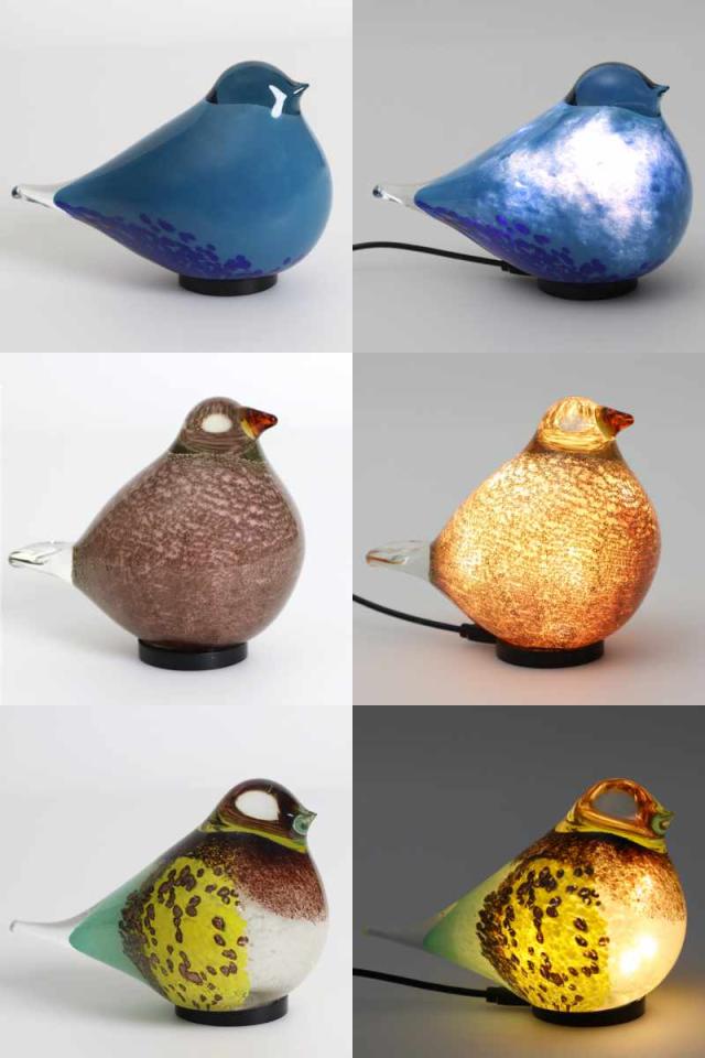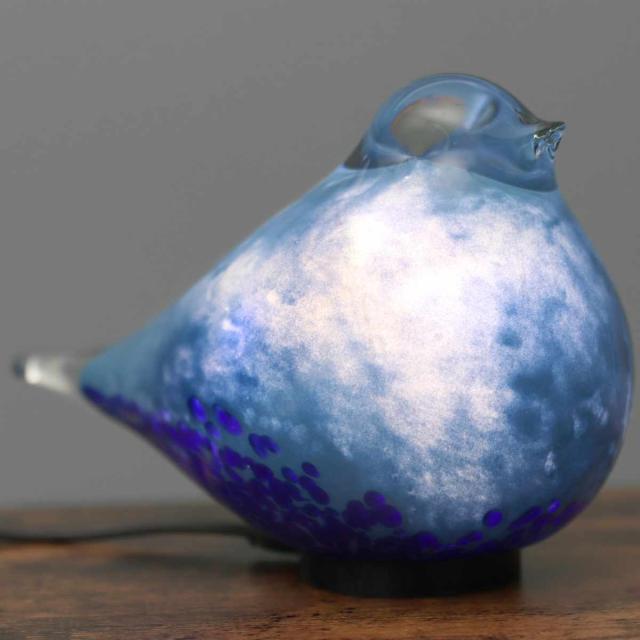 丸みを帯びた鳥をモチーフにしたガラスから放たれる綺麗な光が、心を落ち着かせるランプです。 可愛らしく幻想的な姿にうっとりします。 そっと傍に置きたくなるアイテムです。