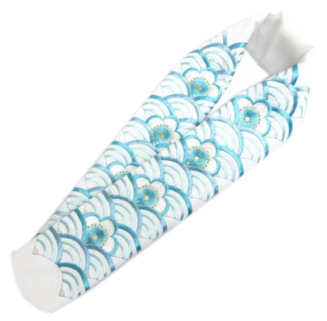 半衿 半襟 刺繍 金糸入り 白色地水色青海波梅 日本製 振袖 成人式 卒業式 袴 着物 女性用 レディース 振袖用 小紋 洗える着物
