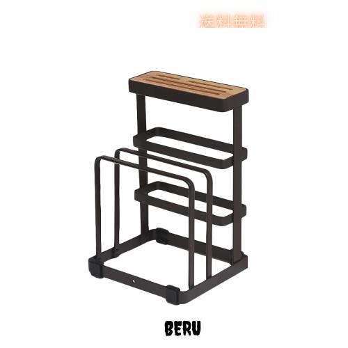 VANRA? まな板スタンド 包丁スタンド 鉄製 まな板立て 水切り包丁 まな板 鍋ふた 木製 包丁立て (ブラウン)