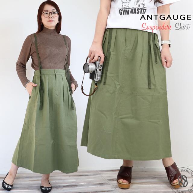 Antgauge アントゲージ コットンリネンサージ サスペンダースカート
