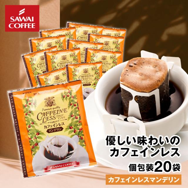 ドリップコーヒー ドリップバッグ コーヒー お試し 個包装 カフェインレスマンデリン 8g ×20袋 澤井珈琲 ドリップパック 20杯分 珈琲 セット デカフェ