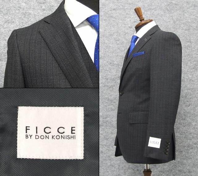 秋冬物 段返り3釦 3ピース [FICCE] BY DON KONISHI スタイリッシュ シングルスーツ グレー系/縞 FC3309-18