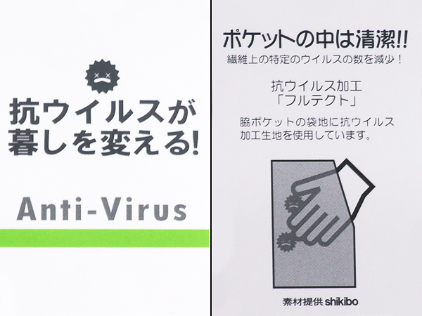 脇ポケット袋地:抗ウイルス生地使用