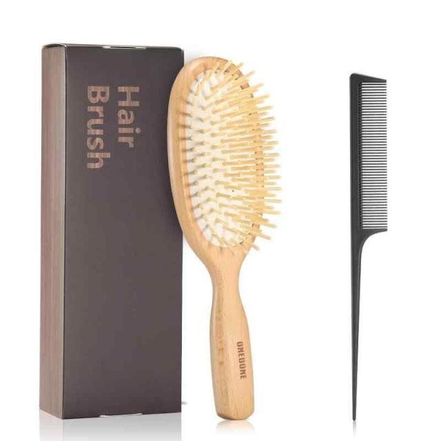 ONEDONE ヘアブラシ レディース メンズ こども パドルブラシ くし 人気 木製 櫛 ヘアケア コーム サラサラ 艶髪 絡まない