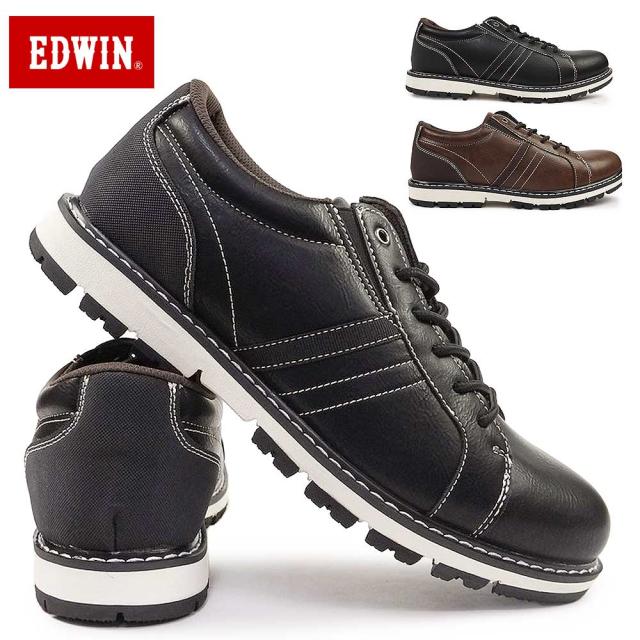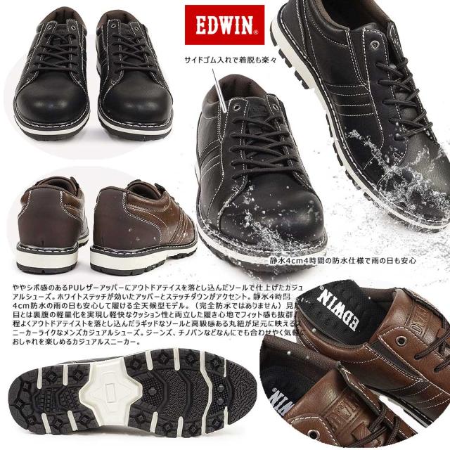エドウィン メンズ 防水 スニーカー EDM4105 ローカット カジュアルシューズ 合皮 ブラック ブラウン 雨 レインシューズ