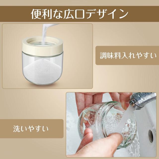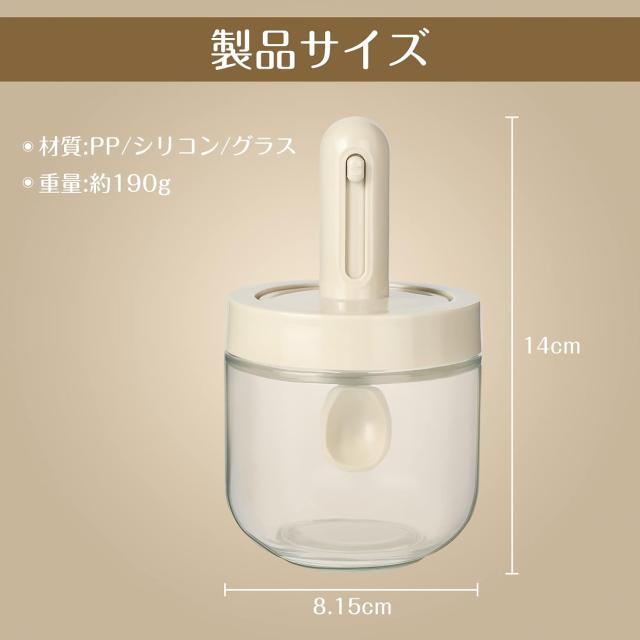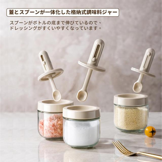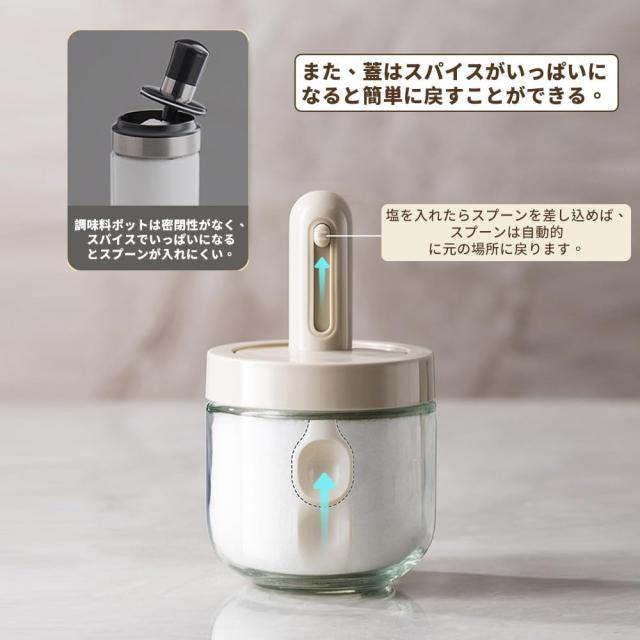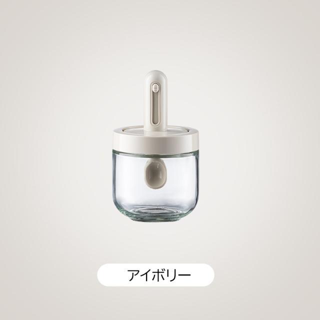 調味料入れ スプーン付き ベージュ グラス 調味料ポット 塩入れ 砂糖入れ 使いやすい おしゃれ 収納 保存 湿気防止 調味料容器 密閉容器 調節可能スプーン付き スパイス入れ 送料無料