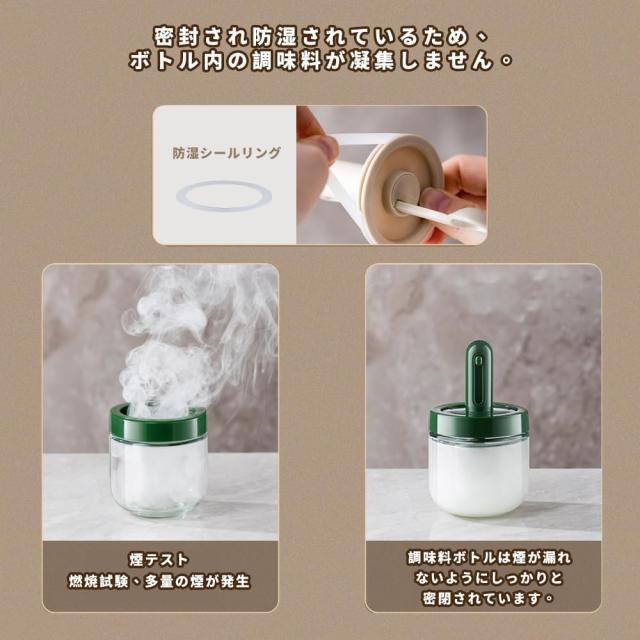 【塩や砂糖が固まりにくい】調味料がかたまりにくい、調味料入れの蓋には防湿のシリカゲルリングが設計されていて、しっかり閉まって湿気・乾燥を防ぎ、調味料の鮮度を保ちます。
