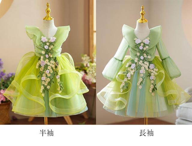 キッズ ドレス ピアノ発表会 女の子 ワンピース 半袖 フラワーガール ベールガール 花柄 中学生 子供 パーティードレス ミモレ丈 ロングドレス お姫様 フォーマル ピアノ 発表会 子ども 結婚式 七五三 妖精系