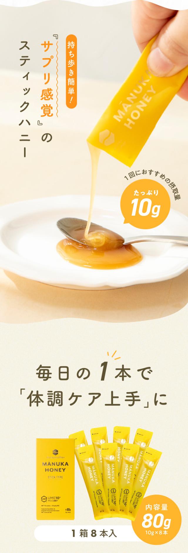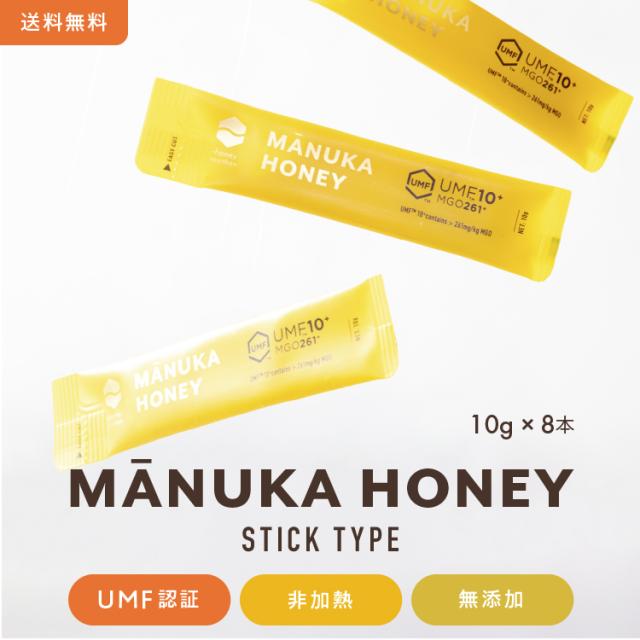 スティック マヌカハニー UMF10+ 10g×8本入り (MGO261+) メール便送料無料 小分け 個包装 持ち運び プレゼント 生マヌカ はちみつ ハチミツ 蜂蜜 携帯用