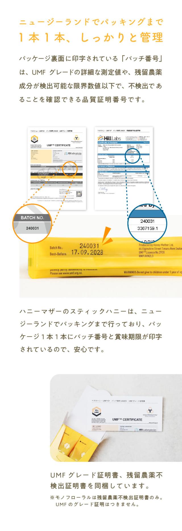 ハニーマザーが本場ニュージーランドから直輸入するマヌカハニーが、持ち運びに便利なスティック個包装タイプになりました。