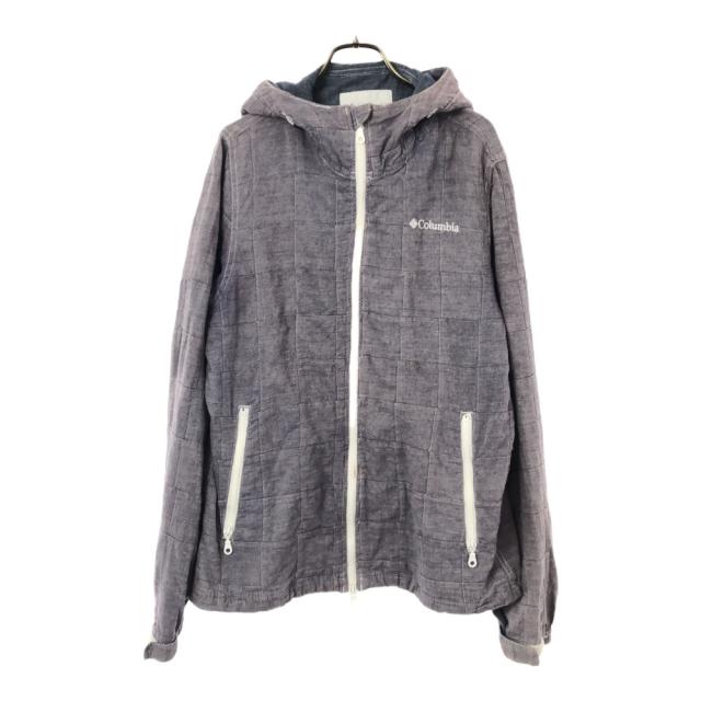 コロンビア ロゴ刺繍 長袖 マドラスパッチワーク ジップパーカー M ライトブルー Columbia アウトドア ジャケット メンズ