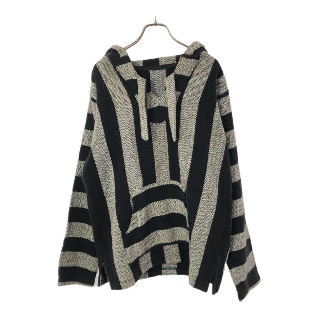 レトロフィット ストライプ ヘリンボーン 長袖 メキシカン パーカー M ブラック×ホワイト Retrofit プルオーバー エスニック メンズ