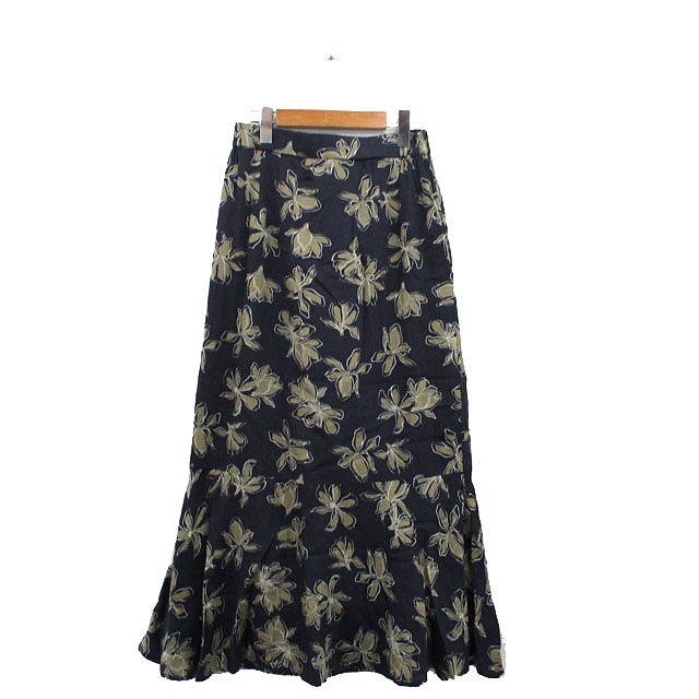 【中古】マージュール marjour マーメイド スカート ロング コットン 花柄 M チャコールグレー /KT3 レディース