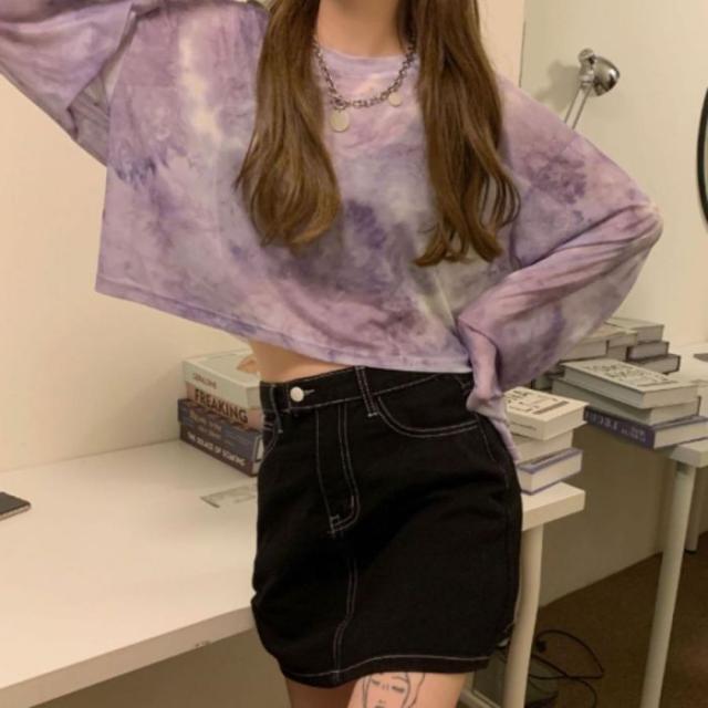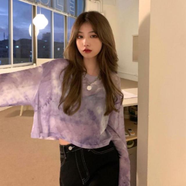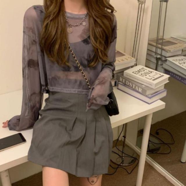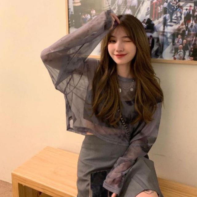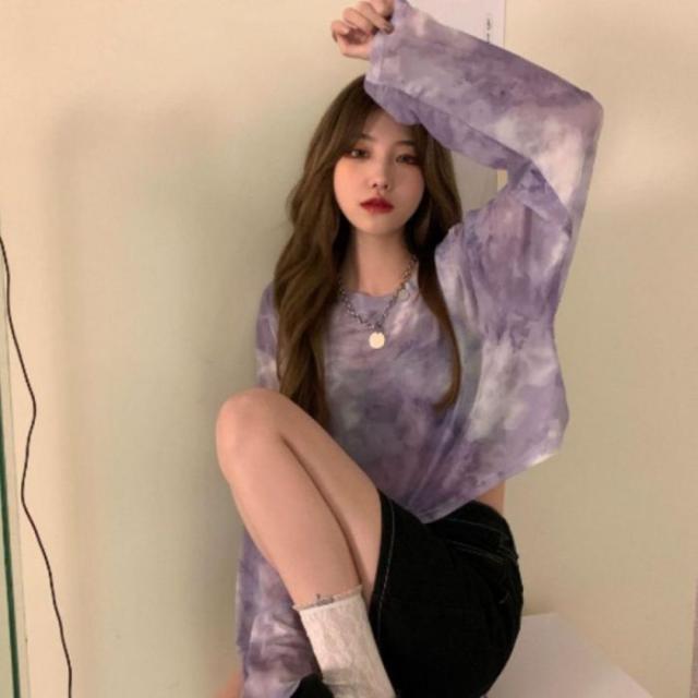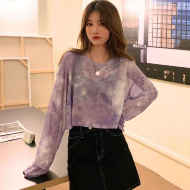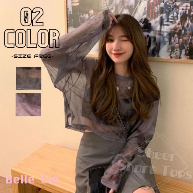 シースルー シアー ショート 短丈 ロンT 長袖 透け感 タイダイ レディース 韓国ファッション セクシー グラデーション かっこいい ダンス 衣装