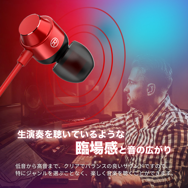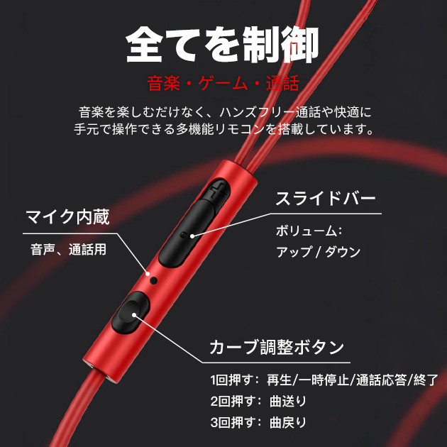 - ワイヤレスイヤホンが壊れて有線イヤホンを購入。 安くて赤の色味も気に入りました。 ただゲームをするときに音が大きくて調節できたら良かったなと思いました。
