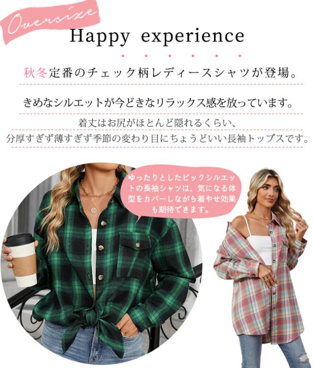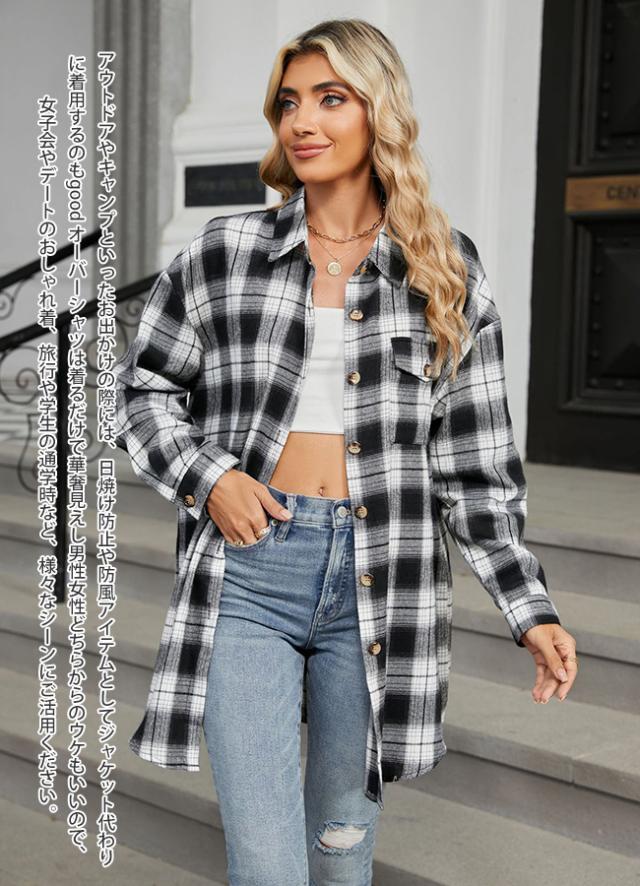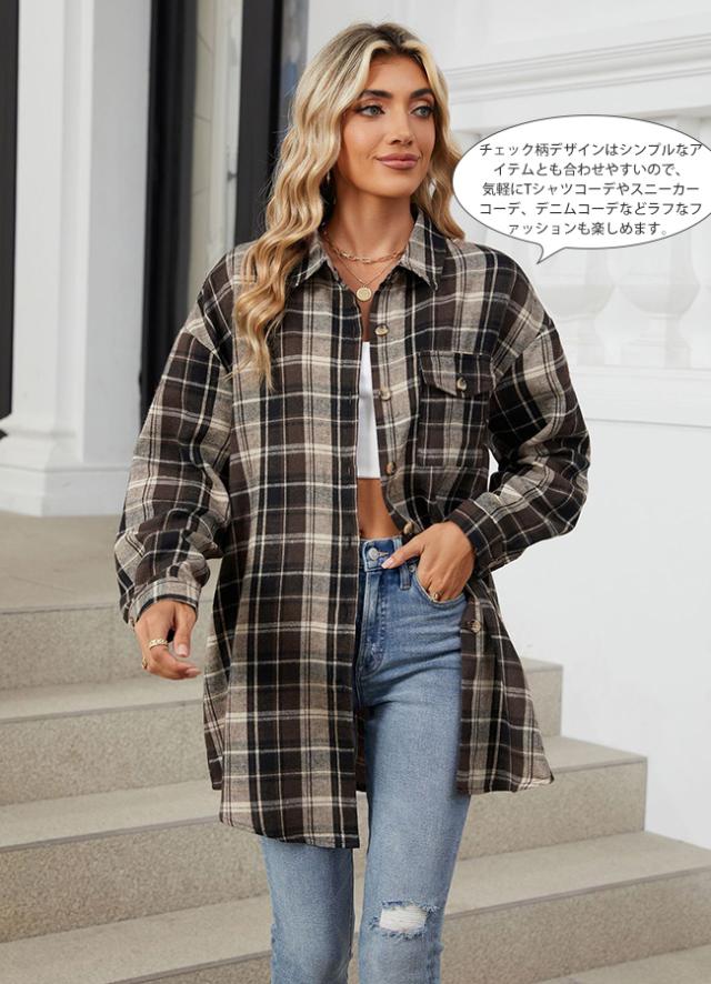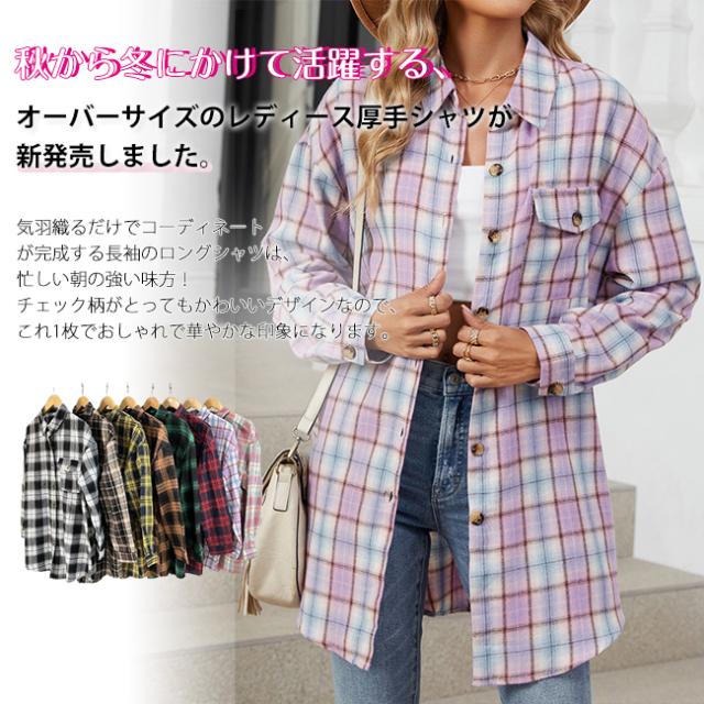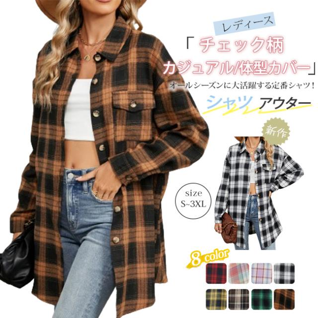 春新作 チェックシャツ レディース ロングシャツ アウター シャツブラウス チェック柄 長袖 トップス ジャケット ゆったり 秋服アウター 大きいサイズ 通勤 通学 春 秋 冬