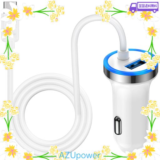 ANNIBER カーチャージャー USB TYPE-Cケーブル付き IPHONE16 シガーソケット 急速充電/2ポート/12V・24V車対応 車載充電器 車 USBソケット タイプC 充電ケーブル シガー USB車 充電器車用 IPHONE