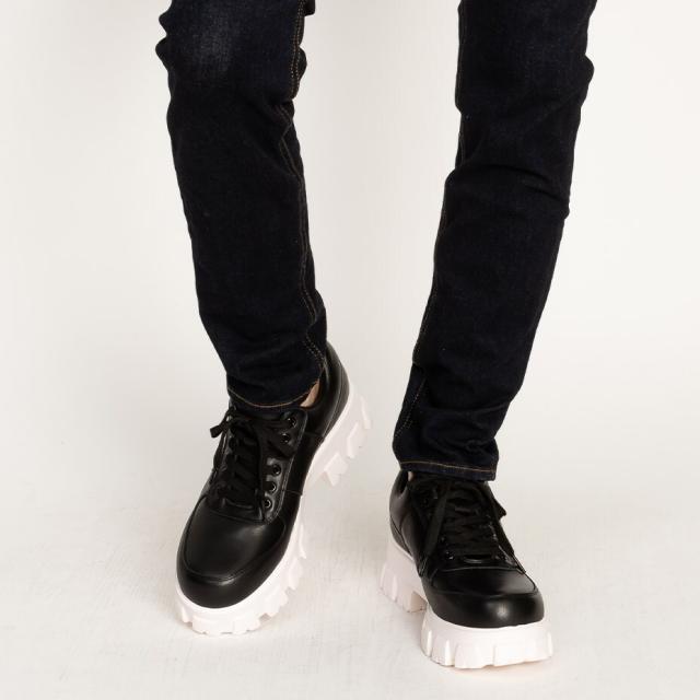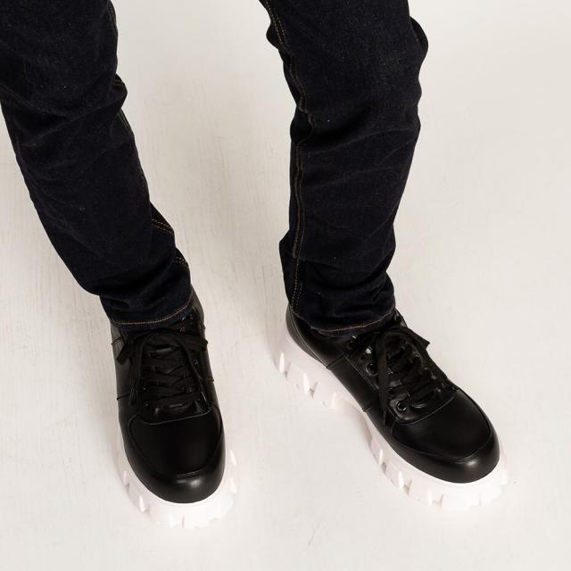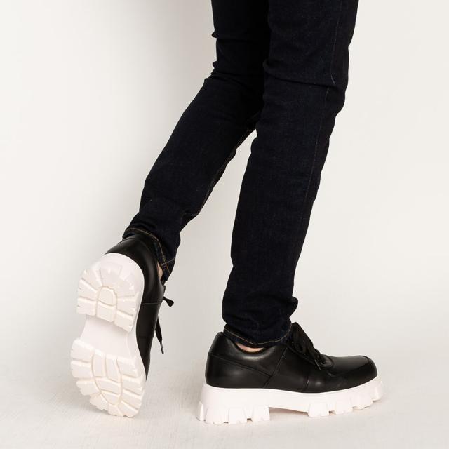 厚底の軽量ソール仕様で、見た目の重厚感とは違い、履き心地は軽快。