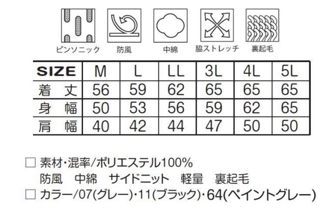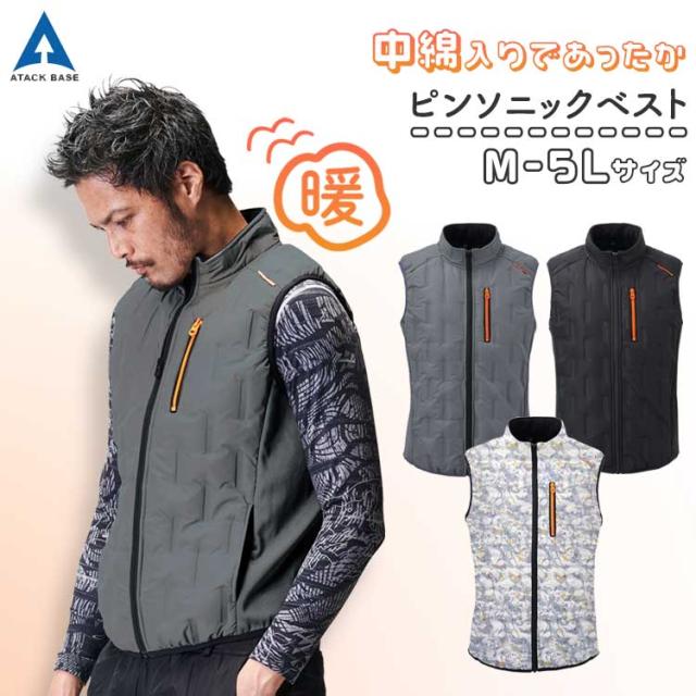 防寒 ベスト メンズ 防寒着 作業着 秋冬 5L 大きいサイズ 作業服 首裏フリース 中綿 ワーク 暖かい ピンソニック グレー ブラック 53000