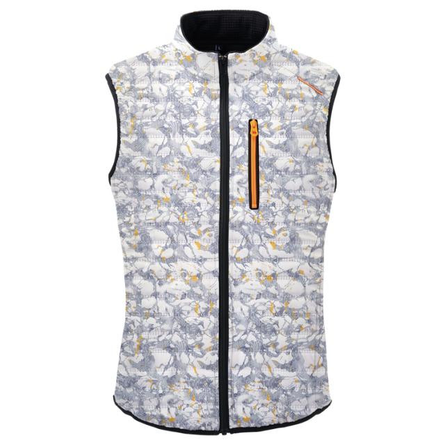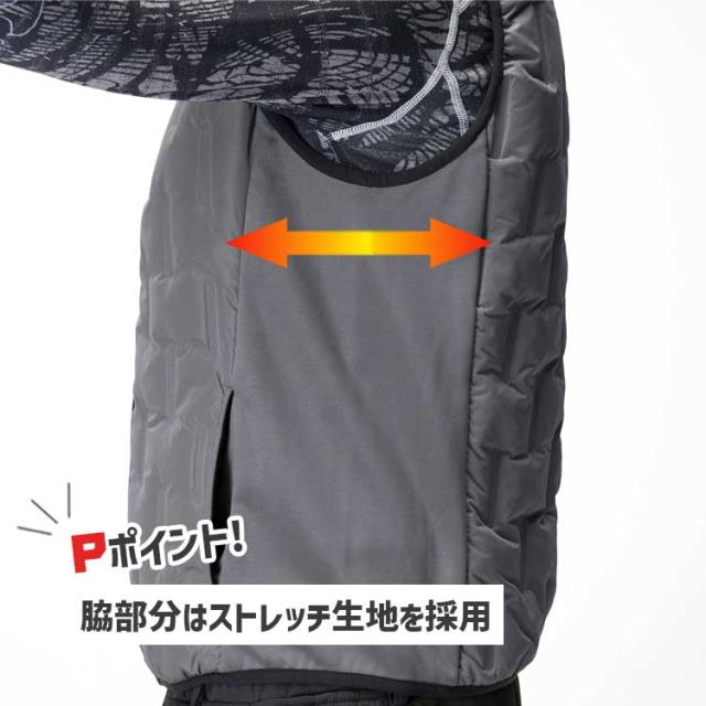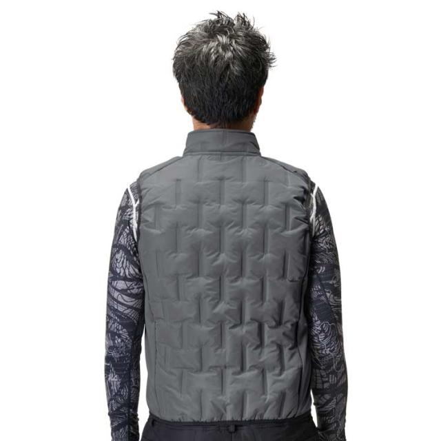 中綿を挟み込んだ防風生地を採用、軽量でスタイリッシュな防寒ベスト