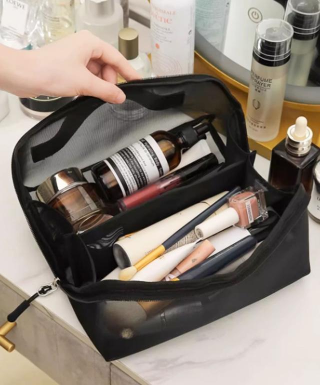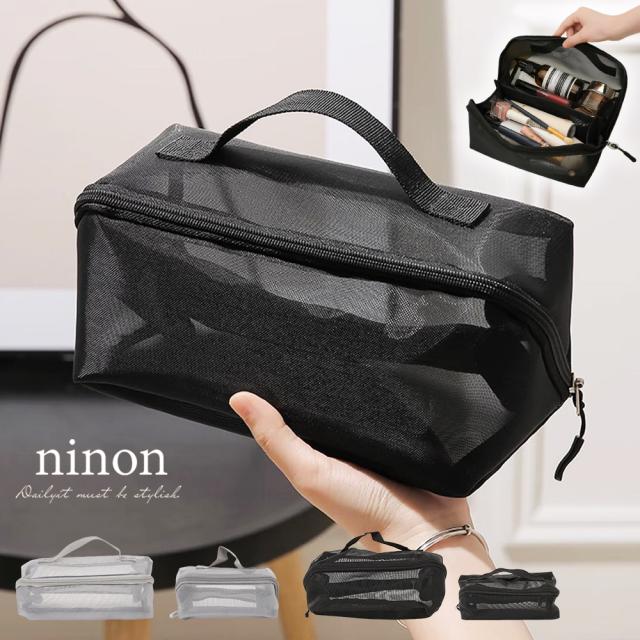 化粧ポーチ 大容量 大きめ メッシュ メイクポーチ 持ち運び 軽量 大きく開く おしゃれ 大人かわいい 黒 機能的 仕切り コンパクト シンプル スタンド 横 ヨコ型 トラベル メンズ 旅行 メッシュポーチ 送料無料