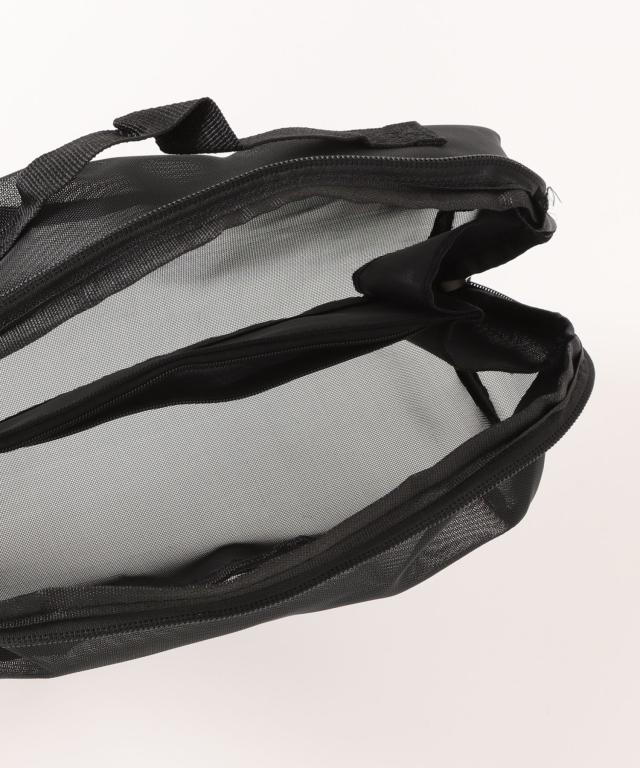 コスメやメイク道具を外部の衝撃から守ってくれる硬めのメッシュ素材を使用。