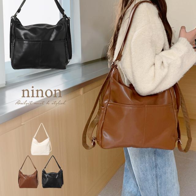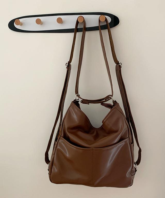 【3WAY/斜めがけ/使いやすい外ポケット/リュックにも、ショルダーバッグにも簡単チェンジ!シンプルショルダーバッグ/リュック/トートバッグ】