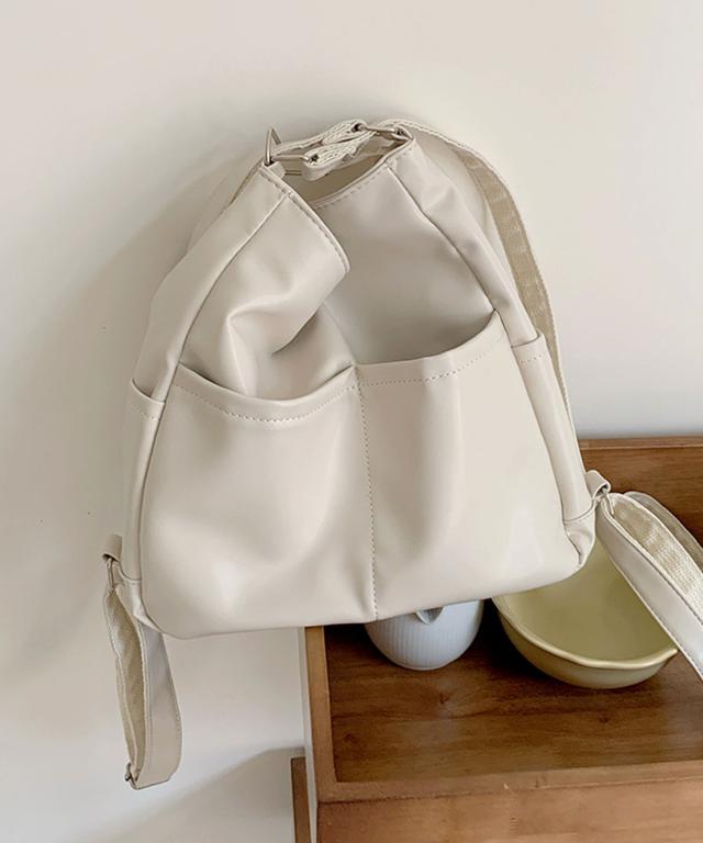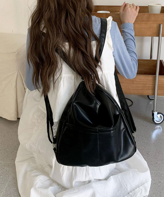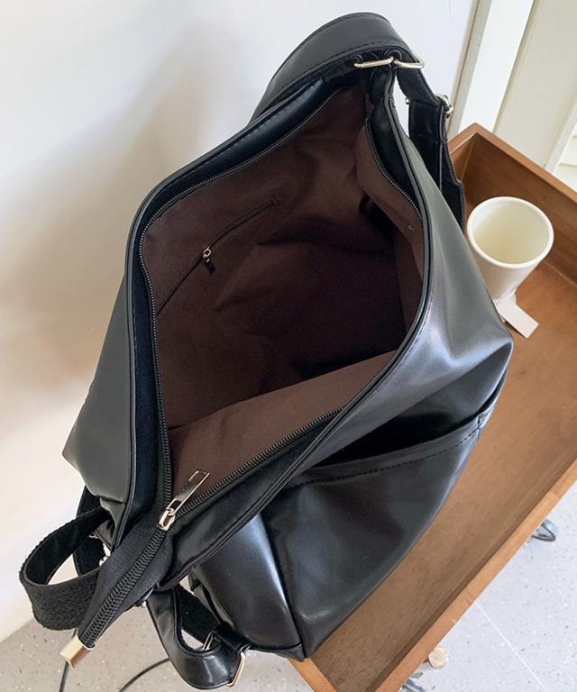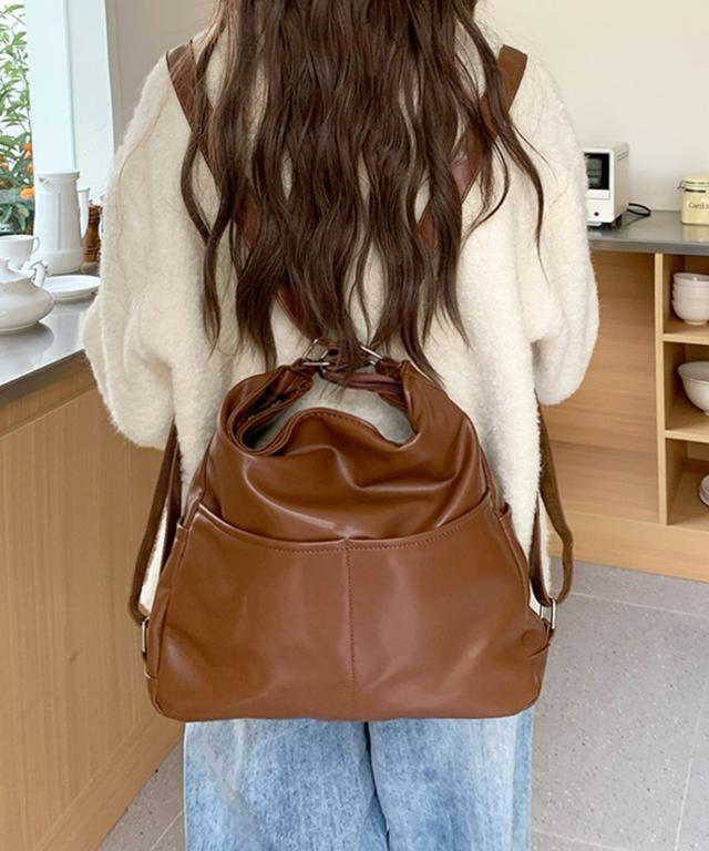 きれいめコーデや大人のカジュアルスタイルにもマッチする、大きめPUレザーリュックに仕上げました。