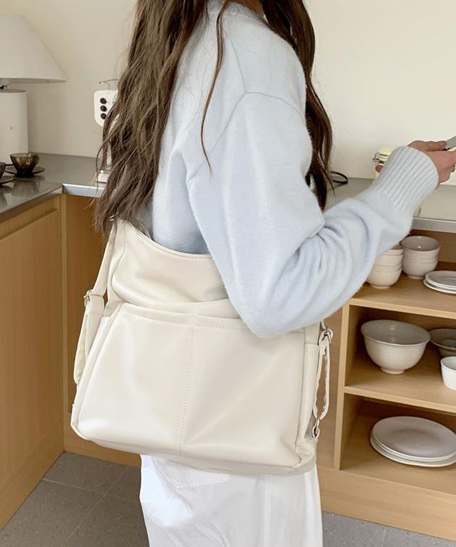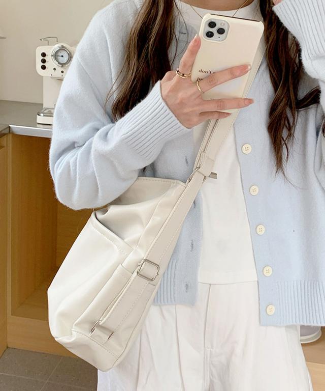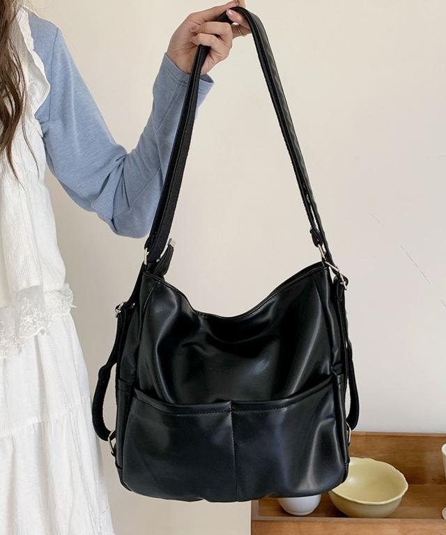 しっとりソフトなPUレザーを使用し、ポケットデザインがアクセントになる大人かわいいショルダーバッグに。