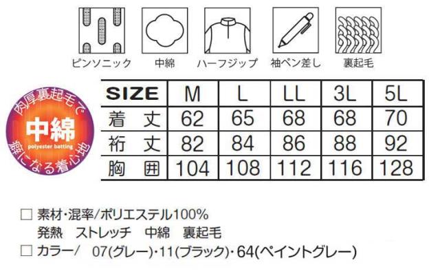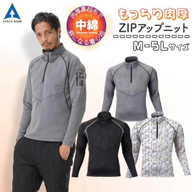 メンズ ジップアップ トップス 秋冬 長袖 大きいサイズ 5L カジュアル 男性用 グレー ブラック 裏起毛 ピンソニック 中綿 53015