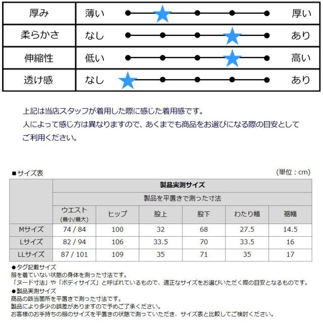ウエストはゴム仕様なので伸縮性が高く、締め付けを軽減します