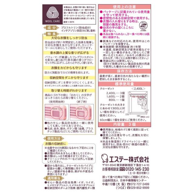 ●大切な衣類を約1年間しっかり虫から守ります。*温度、収納容器及び使用状態などで一定しない場合があります