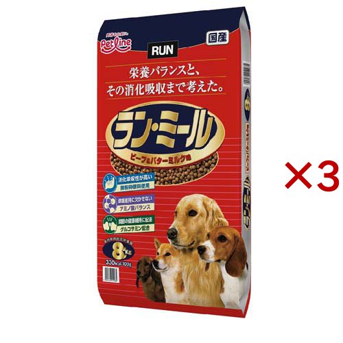ラン・ミール ビーフ&バターミルク味(8kg×3セット)[ドッグフード(ドライフード)]