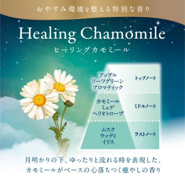 ●ヒーリングカモミールの香り:月明かりの下、ゆったりと流れる時を表現した、カモミールがベースの落ち着く香り