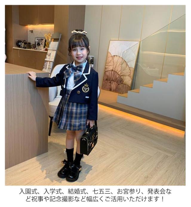 キッズ 入学式 スーツ 女の子 ガールズ 卒業式 子供服 フォーマル スーツ スカート チェック柄 プリーツスカート 3点セット 制服 ブレザー キッズスーツ 学生服 小学生 中学生 フォーマルスーツ 七五三 キッズ 小学校 撮影 卒服 受験 コスチューム