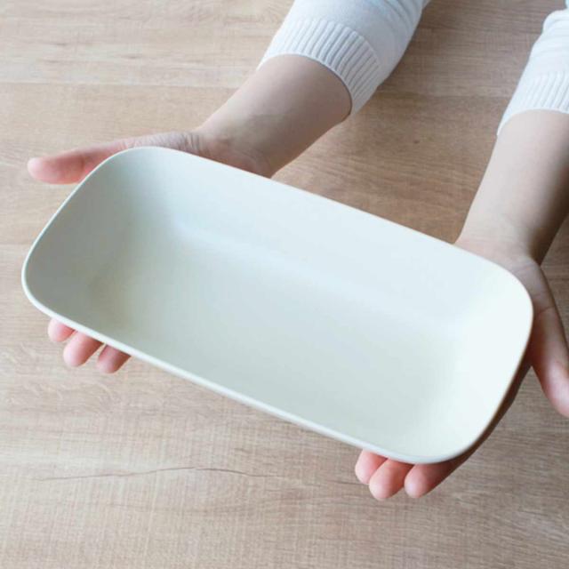 樹脂製で軽くて割れにくく、お子様からシニアまで世代を選ばないプレートです。カレーライスやパスタなどの盛り付けに幅広く使える便利なサイズです。