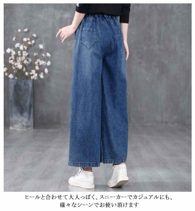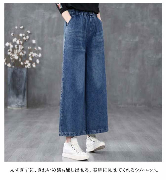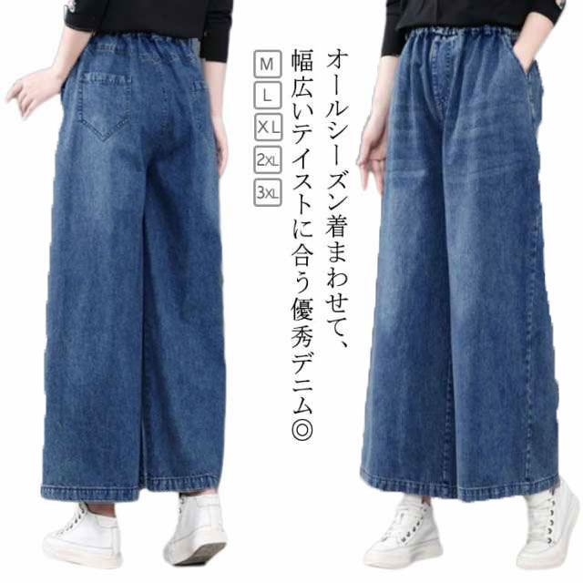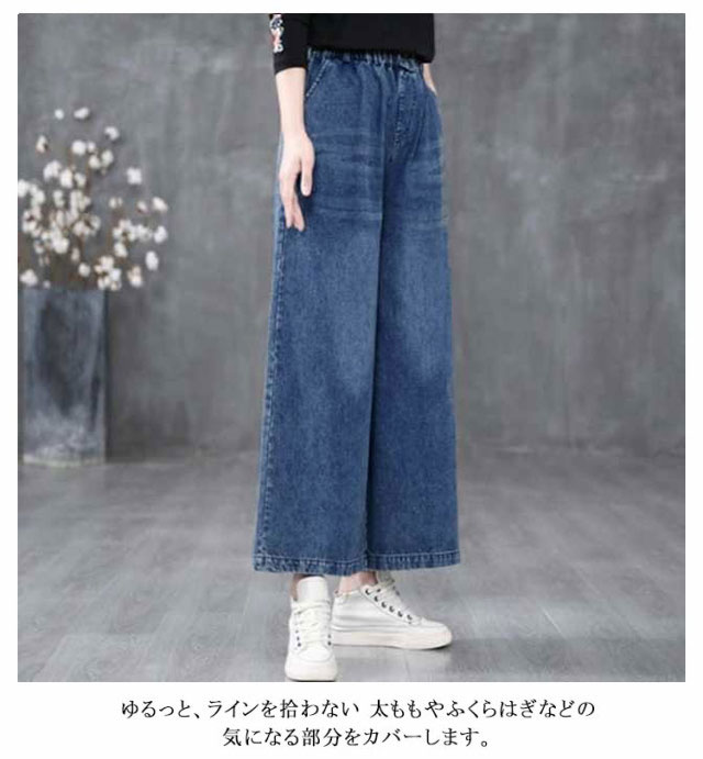 デニムワイドパンツ デニムパンツ レディース ゆるフィット 大きいサイズ ボトムス パンツ ゆったり 春 夏 秋冬 デニム レディースパンツ ストレート ゆったり 体系カバー プチプラ 美脚 華奢見え 着痩せ ガウチョパンツ ワイドパンツ ロングパンツ 動きやすい 送料無料