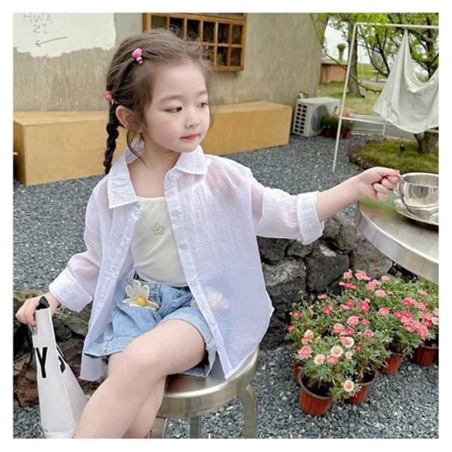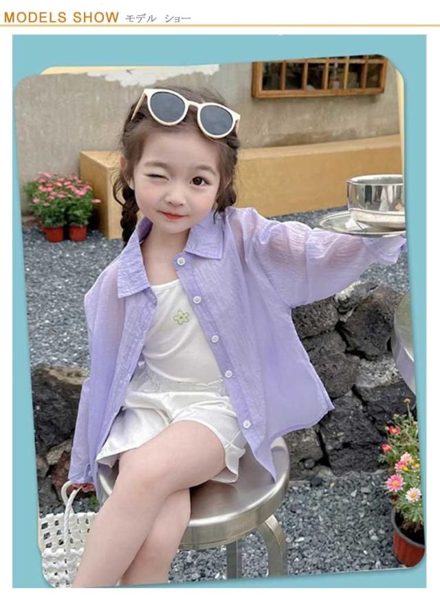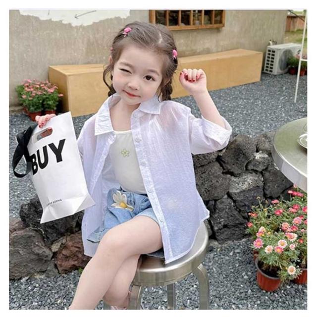 キッズ シャツ 女の子 トップス ブラウス シアー 透け感 子供服 可愛い おしゃれ シンプル 無地 長袖 シアーシャツ シースルー 羽織 韓国 ガールズ 小学生 幼稚園 保育園 透けシャツ 90 100 110 120 130 140cm