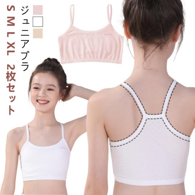 【2枚セット】キッズ ジュニアブラ スポーツブラ 小学生 中学生 S M L XL 子供 ジュニア スポブラ ダンス 女子 ファーストブラ かわいい ハーフトップ ブラジャー ノンワイヤー インナー 肌着 下着