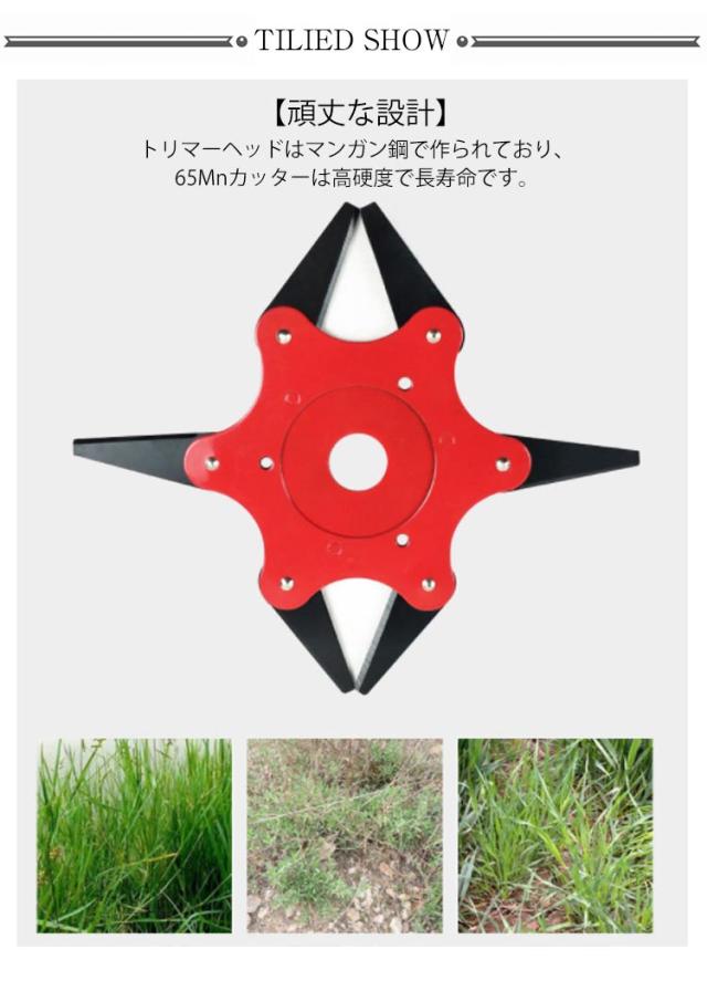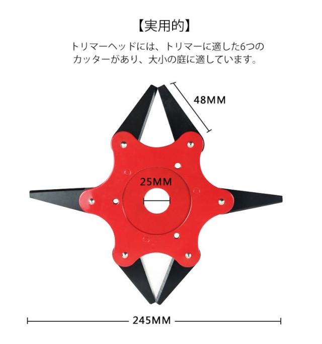 | 6葉草刈りチップソー2個入り 【頑丈な設計】トリマーヘッドはマンガン鋼で作られており、65Mnカッターは高硬度で長寿命です。 【広い用途】芝刈り機のヘッドは、中心に(約)1インチの丸い穴があり、99%のストレートシャフトパンチに適しています。 【取り付け簡単】芝刈り機のヘッドは、取り付けが簡単で使いやすく、庭や農業での使用に非常に適しています。 【実用的】トリマーヘッドには、トリマーに適した6つのカッターがあり、大小の庭に適しています。 【草刈り効率アップ】革新的なトリマーヘッドであり、数秒で素早くに雑草または枝を切り抜けます。 | |