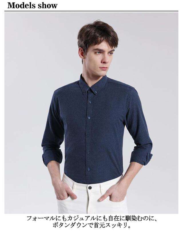 長袖シャツ メンズ ネルシャツ 100%綿 長袖 シャツ ボタンダウン スッキリ 細身 スリム 無地 ビジネスシャツ 紳士服 ポケットなし 秋 冬 長袖 トップス 男性 秋服 冬服 春服 コットン ナチュラル 20代 30代 40代 50代 60代 通勤 オフィス ビジネス 大きいサイズ 【送料無料】